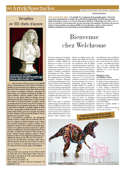 « Bienvenu chez Welchrome », L’écho du Pas-de-Calais, Arras (FR), n°148, octobre – novembre 2014.