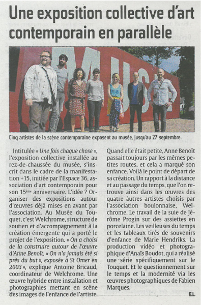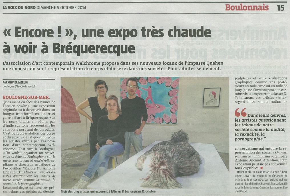 « Encore !, une expo très chaude à voir à Bréquererecque », La Voix du Nord, Boulogne-sur-Mer (FR), 5 octobre 2014.