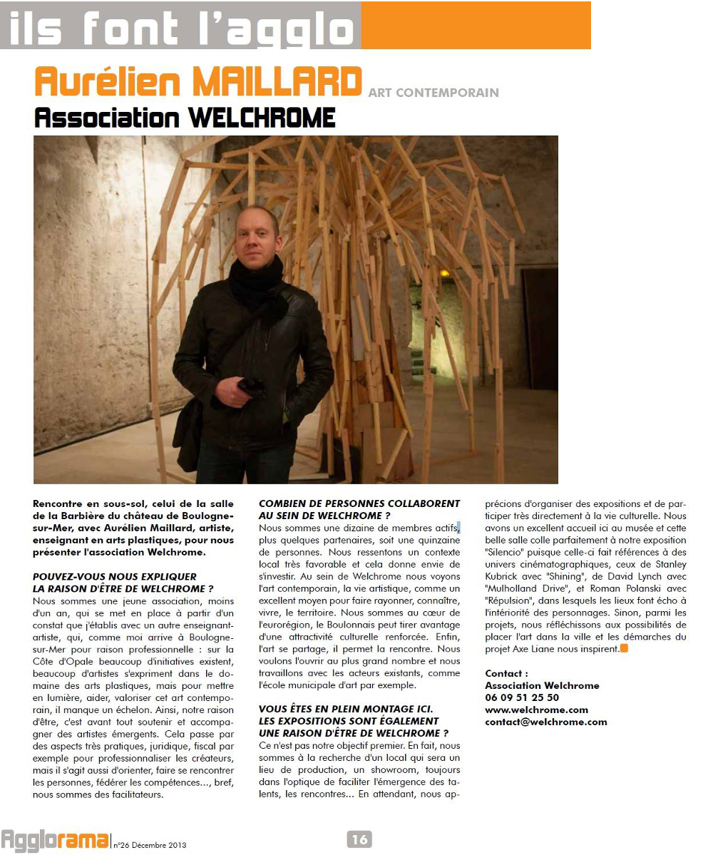 « ils font l’agglo – Aurélien Maillard, association Welchrome », Agglorama, Boulogne-sur-Mer (FR), n°26, décembre 2013.