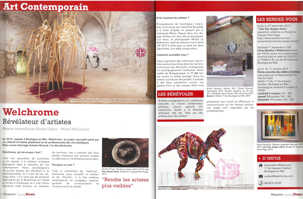 Nicole Osstyn, « Welchrome. Révélateur d’artistes », IntraNews n°13, septembre 2015, Boulogne-sur-Mer.